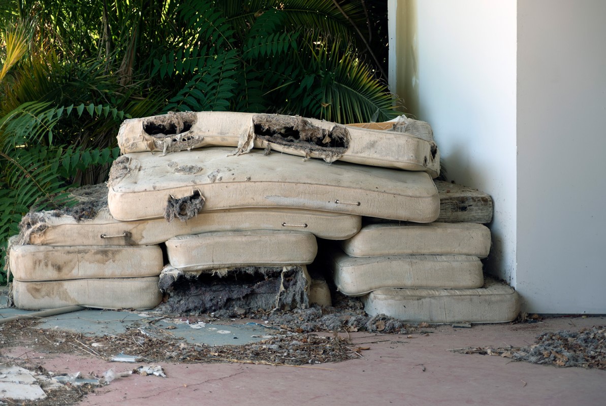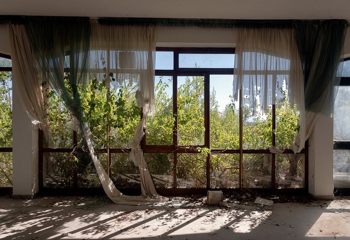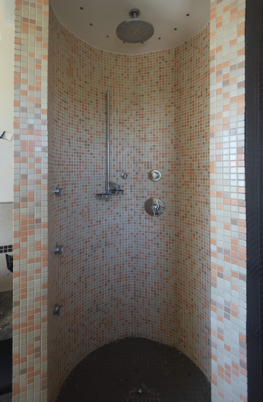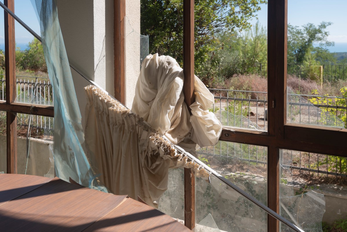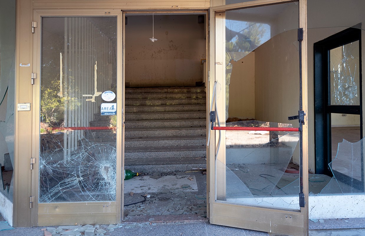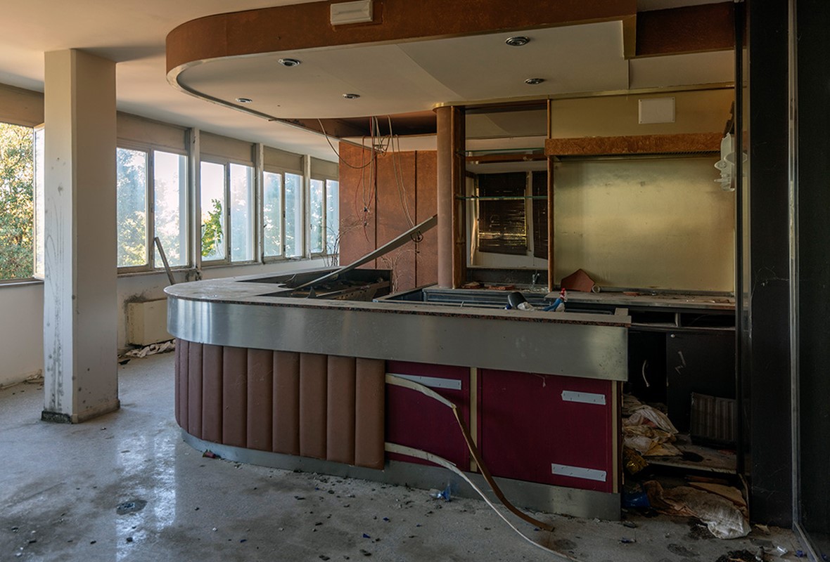 Immaginate un hotel a 3 stelle sul culmine di una collina circondata da pini a nemmeno cinque chilometri in linea d’aria da una rinomata località marina del medio adriatico, che dispone di tre piscine scoperte di varie dimensioni, un maestoso acquascivolo e un campo da tennis, oltre ovviamente alle numerose stanze con terrazzo e doccia privata, ristorazione di qualità e vari luoghi di ritrovo, tra cui una discoteca. Le recensioni della clientela arrivano fino al 2017 e sono tutte entusiastiche, eppure questa avventura imprenditoriale è improvvisamente naufragata senza un’apparente spiegazione, come se tutto fosse svanito in una bolla di sapone. Non esistono nemmeno procedure concorsuali in atto, il che fa supporre che la proprietà del credito sia interamente in capo a un Istituto bancario del luogo. L’esperienza di questi luoghi a servizi totali mostra più di una storia finita male, ma la cosa davvero insolita è che non si rintracciano in rete notizie utili a ricostruire il periodo di vita di questo hotel. Come anticipato sopra, la crisi sembra essere avvenuta almeno tre anni prima dell’impatto del Covid-19 e dunque, in presenza delle ottime e numerose recensioni verificate, si può solo ipotizzare una mala gestione degli introiti che certamente il sito è stato in grado di assicurare per parecchi anni. L’accesso all’hotel è possibile percorrendo il sentiero collinare che costeggia l’edificio, per poi salire ancora attraverso un campo fino a scoprire un ampio varco nella recinzione. Quello che si nota subito è la massa di cuscini bianchi sparsi nel vasto piazzale dell’ingresso, probabile frutto delle solite scorrerie di ragazzotti annoiati. Il resto non è da meno, perché gli interni sono quasi interamente devastati, con chiari segni di asportazione di rame dai bagni, alcuni dei quali di buona fattura, e con l’altrettanto evidente occasionale presenza di bivacchi. La parte migliore dal punto di vista dell’urbex è quella degli scivoli che si addossano alla collina e dei vari piani di discesa per il loro percorso, tutti comprensivi di luoghi di ristoro o di intrattenimento che, seppur in fase di abbandono o degrado, mantengono un buon impatto scenico. Come ogni volta, mi ritrovo a riflettere sullo stacco che danno questi luoghi concepiti per il relax o il divertimento rispetto alla loro situazione attuale, in cui il forzato abbandono li rende ancora più inautentici rispetto a quello che ancora riescono a mostrare dei tempi belli: echi lontani delle grida di gioia, il vento che fa scricchiolare sinistramente i grossi tubi degli scivoli e il sole estivo che ingiallisce ogni cosa. L’unico tocco di poesia è la porta da calcio segnata con una vernice arancione sul muro che delimita il campo da tennis.